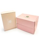 This pink mailer box is made from 250 gsm fancy pearl paper on the surface, E Flute corrugated cardboard in the middle and 250gsm fancy pearl paper inside also. So as you can see from the surface, the fancy paper is really shinny. And the green hot stamping logo is obvious and outstanding. Special packaging makes your brand logo be impressed for the consumer, which can help to increase your sales. And the sturdy corrugated box can be reused.