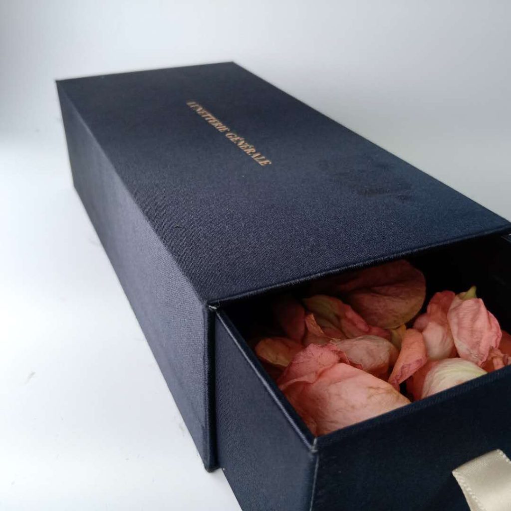 This kind of luxury rigid slide drawer box is made from fancy cloth special paper. With gold foil stamping(it can be other foil stamping) on the lid box, these small rigid cardboard slide drawer flower gift boxes looks fabulous. It is very easy for you to open and close the box with ribbon pull.They can also be used to pack some other gorgeous cosmetics gift like necklace and bracelet jewelry gifts.