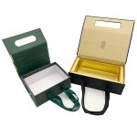 Multiple Function Creative Design Boxes with Handle, it’s a box but you can also use it as a paper gift bag. Usually, customers use it to pack tea or wine set as a gift. It looks very luxury and elegant, customers can easily hang it because we make a handle with ribbon to the box. It’s very popular in food and beverage industry or cosmetics industry, specially in gifts and crafts industry. Customers can choose to have the insert inside or not, if customers want the insert, we can also make different material insert for customers to choose, we have different options with different costs. For more details, pls email us, thanks!